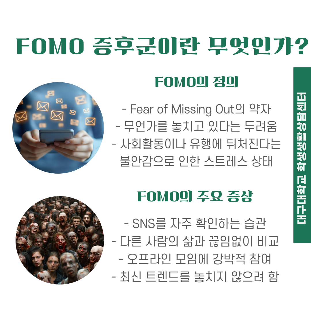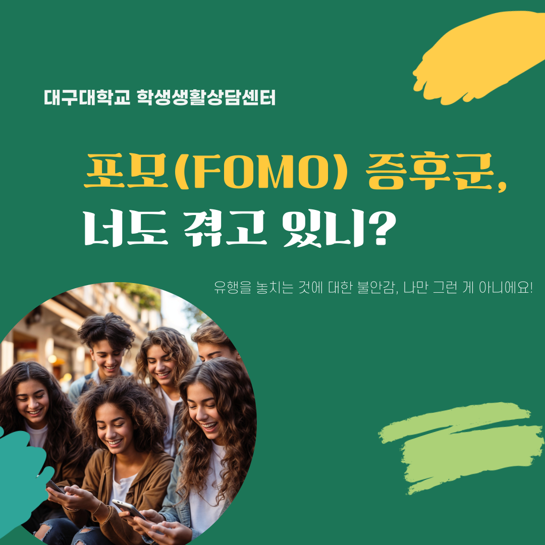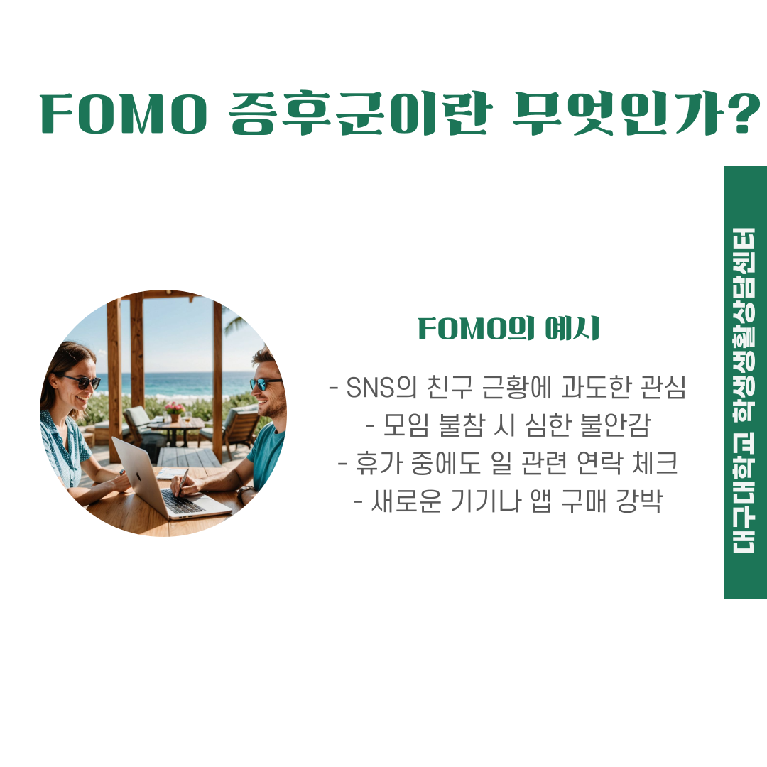 이번 카드뉴스에서는 이러한 마음의 원인인 **"포모(FOMO) 증후군"**에 대해 알아보았습니다.